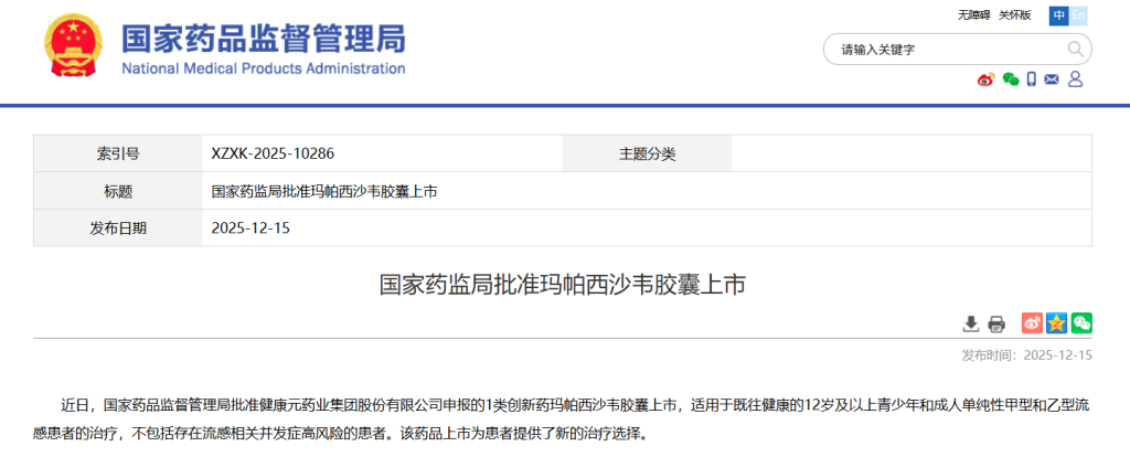 流感創新(xin)藥獲批(pi)上市(shi),全療程(cheng)隻需口服一(yi)次
